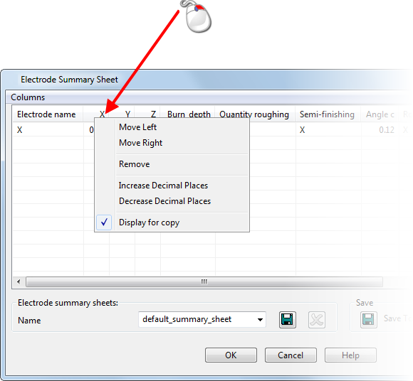 - Щелкните правой кнопкой мыши по заголовку столбцов в диалоге Сводка электродов и воспользуйтесь опциями контекстного меню, чтобы кастомизировать вид сводной таблицы электродов.