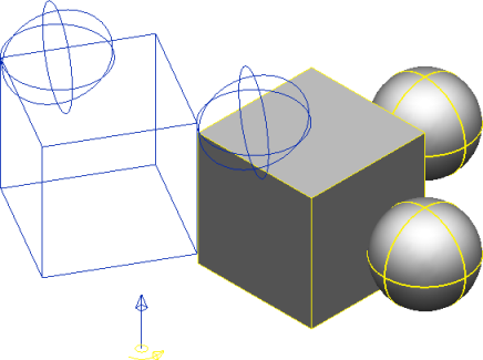 В графическом окне вы увидите маркер оси вращения. Он указывает расположение начала координат текущей ЛСК и точки вдоль оси, нормальной к рабочей плоскости. Объекты поворачиваются вокруг оси вращения.