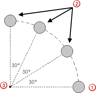 Можно повернуть объекты для получения одной или более копий. Следующий рисунок демонстрирует создание трех копий поворотом от исходного объекта, каждая на угол 30