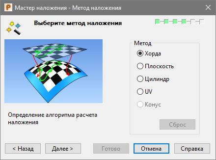 Хорда - открывается страница Создание карты наложения длиной хорды Мастера наложения.