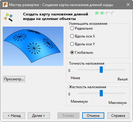 - Глобально (рекомендуется) - данная опция равномерно минимизирует искажение по всей поверхности, по возможности сохраняя форму наложенного объекта. Когда выбрана эта опция, Точность наложения становится недоступной.