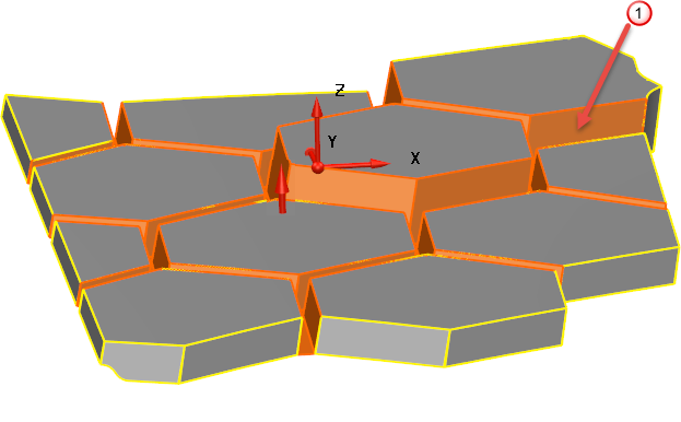 - выбранные Верхние грани, между которыми будут созданы закрывающие поверхности, подсвечиваются. В центре выборки появляется стрелка, указывающая направление текущей рабочей плоскости.
