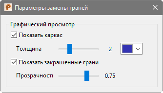 Используйте опции этого диалога для настройки внешнего вида графического просмотра, который открывается перед нажатием кнопки Применить в диалоге Заменить грани.