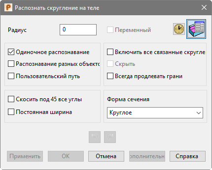- Выберите подходящие опции редактирования в диалоге Распознать скругление на теле. Выберите: