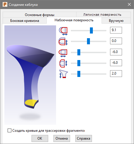 Создать кривые для трассировки фрагментов - выберите эту опцию, чтобы создать кривые вдоль кромки каблука. Используйте эти кривые, чтобы создать элементы на каблуке. Например, эффект каблука Льюиса в передней части каблука или обшивку каблука.