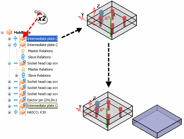 Используйте "горячие" клавиши дерева сборки для быстрого добавления компонента в свободное пространство и изменения связей: