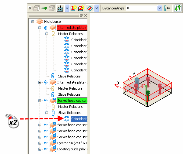 - Дважды щёлкните мышью по значку ветки связей компонента для создания связи с выбранными главным и подчинённым компонентами: