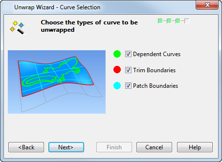 - Выберите опцию Границы лоскута. Откроются направляющие для разворачиваемых кривых.