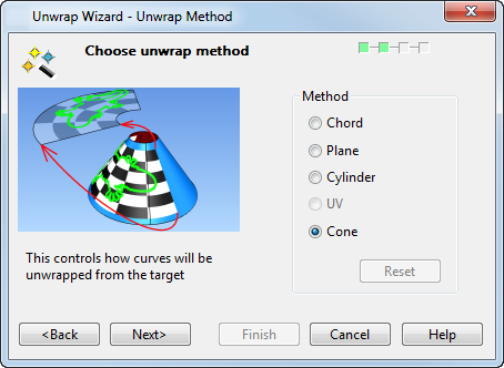 - Коническая проекция в этом типе разверток проводится примитивной конусной поверхностью, которую сначала нужно создать. Необходимо создать Конус-примитив, который точно совпадает с конической формой объекта, который нужно развернуть.