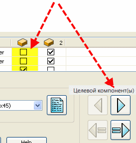 - добавляет выбранный компонент как цель. Цель всегда добавляется к последнему пересечению. Можно изменить порядок пересечения этого компонента и задать применение Power-элементов. Эта кнопка неактивна, если выбранный компонент уже является целевым.