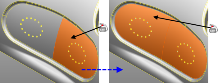 - Используйте щелчок мыши и клавишу Shift для выбора для выбора двух или более непрерывных граней: