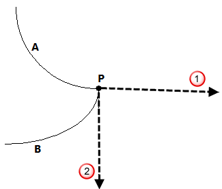 В точке Р заданы два касательных вектора: один - для кривой А
