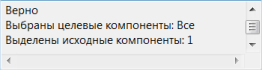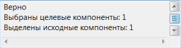 - Информация о выбранных объектах - эта панель содержит информацию о количестве выбранных целевых и исходных компонентов. На следующей информационной панели показано, что выбраны один целевой и один исходный компонент.