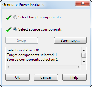Используйте этот диалог, чтобы выбрать целевой и исходный компоненты при генерировании Power-элементов.