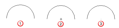 Через - позволяет ввести точку, через которую должна проходить дуга. Дуга редактируется в зависимости от выбранной точки, как показано ниже.