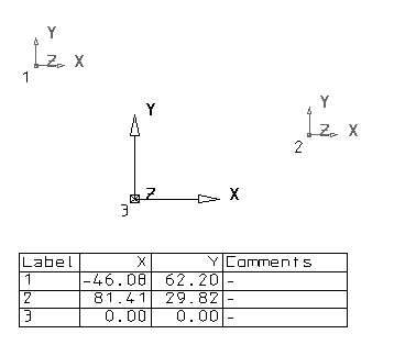 Каждая ЛСК имеет обозначение. В таблице записаны сведения о положении начала координат каждой ЛСК. Эти координаты приводятся относительно активной ЛСК. Столбец комментариев также присутствует в таблице.