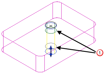 — выберите эту опцию, чтобы создать сквозное отверстие. На экране длина отверстия выходит за пределы тела. Запас длины отрисовывается по обе стороны отверстия.