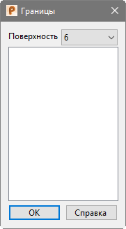 - Поверхность - содержит имена выбранных поверхностей. Можно выбрать другую поверхность из выпадающего списка и её границы отобразятся в данном списке.