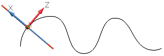 Если щелкнуть мышью по каркасному объекту, то можно увидеть, что ось Z локальной СК проходит по касательной к объекту в точке, где щелкнули мышью.