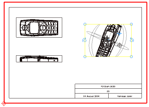 При повороте вида в чертеже граница вида тоже поворачивается с моделью для установления подходящей ориентации с видом. Например, если вид поворачивается из горизонтального положения в вертикальное, граница тоже поворачивается к вертикали, чтобы не было необходимости изменять размеры границ.
