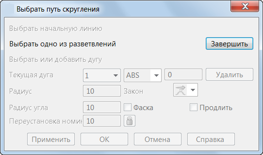 Когда отображается этот диалог, отрисовываются возможные линии, помогающие определить путь скругления.