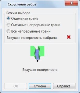 Все непрерывные грани - выбирает грань щелчком мыши и все грани, образующие плоскую непрерывную поверхность с выбранной гранью.