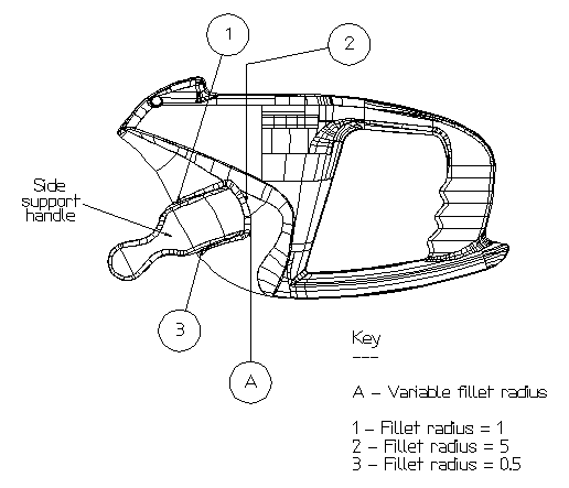 На следующем примере представлена поверхность скругления со стороны опорной рукоятки пилы: