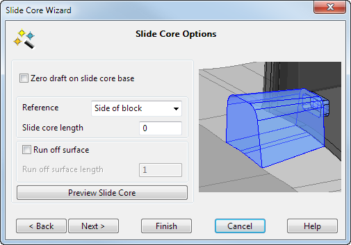 Если выбрана опция Нулевой угол на основании ползуна-пуансона, можно нажать только кнопку Готово, поскольку изменять поверхность разъёма не нужно.