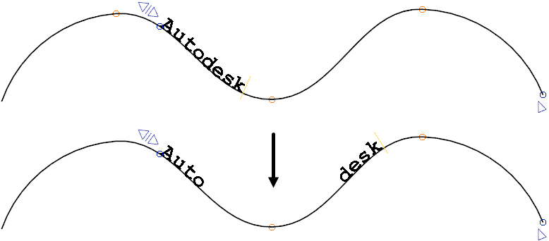 для перемещения текста вдоль кривой, сохраняя интервал между выбранным текстом и следующим блоком текста.