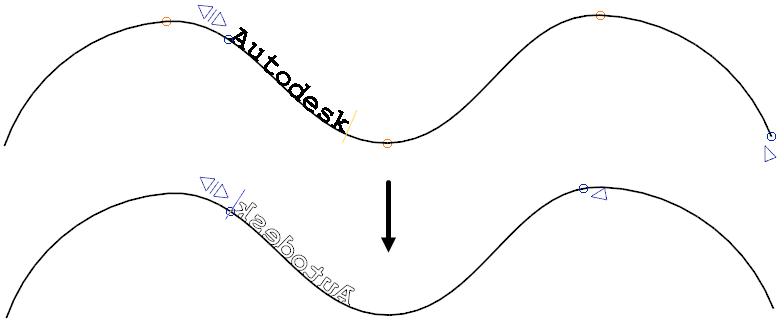 Чтобы изменить направление текста на кривой: