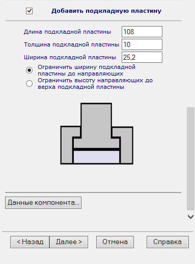 - Добавить подкладную пластину - если выбрана данная опция, следующие опции появляются внизу страницы браузера.