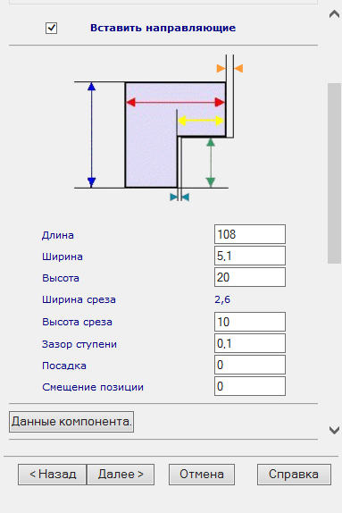 - Зазор ступени - измените положение буртиков компонента ползуна на данную величину.
