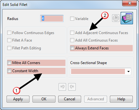 На данном примере показано, как редактировать несколько скруглений. Редактирование элементов других типов производится аналогично.