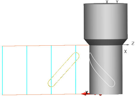 Используйте элемент Радиальный вырез в теле для создания в теле выреза (кармана), который можно обработать на токарно-фрезерном станке.