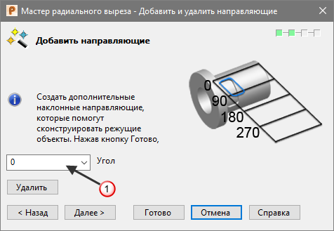 - Используйте страницу Добавить направляющие Мастера радиального выреза, чтобы вставить дополнительные наклонные направляющие.