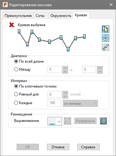 Поместить 2 точки на кривой - показывает 2 точки на элементе массива. Используйте На примере показаны точки, расположенные на кромке элемента массива. Элементы массива создаются на этой кривой.