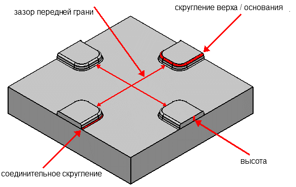 Верх/низ скругления - введите значение, чтобы изменить радиальный зазор между вогнутым скруглением основания и выпуклым скруглением верха.