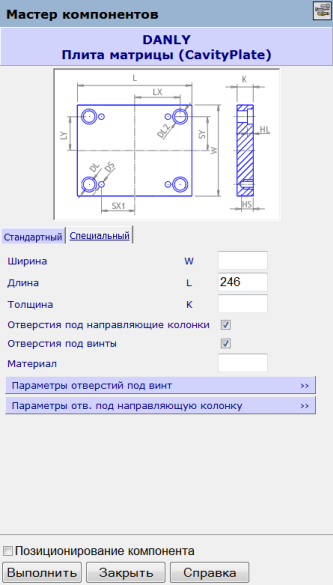 Используйте такие опции, как Ширина пластины, Длина пластины и Толщина для изменения размеров. Точные параметры во вкладке Специальный отражают тип компонента, который нужно задать.