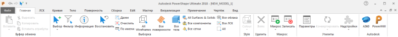 PowerShape используется настраиваемый ленточный интерфейс, содержащий вкладки с двумя типами кнопок и расширенными подсказками.