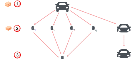 Функционал "Моделирование сборок" позволяет быстро и легко генерировать сложные сборки из стандартных компонентов. Вы можете зарегистрировать тела как определители компонентов, а затем создать в сборке любое количество копий этих компонентов. Например, автомобиль можно представить как сборку, состоящую из четырёх компонентов колеса и одного компонента корпуса. Каждый компонент колеса создаётся с помощью одинаковых определителей компонента колеса. Компонент корпуса создаётся с помощью определителя компонента корпуса.