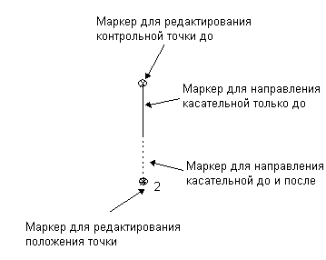 Половина, которая ближе к контрольной точке, редактирует только направление касательной до (или после) точки, тогда как другая половина редактирует оба направления касательной - до и после. При перетаскивании этих маркеров, длина касательной остается постоянной.