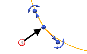Если нажать или потянуть за маркер направления касательной до или после, маркер направления касательной на другой стороне точки будет вынужден выровняться с выбранным маркером.