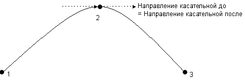 Направления касательных до и после точки можно задать независимо или оба вместе. Если они заданы вместе, кривая будет сглаженной относительно касательных в этой точке. На рисунке направление касательной до совпадает с направлением касательной после точки 2.