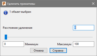 В этом диалоге отображаются количество выбранных примитивов, которые можно удлинить. Если выбрать объекты, которые удлинить нельзя, PowerShape выводит сообщение об ошибке.