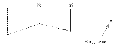 Ординатные размеры создаются вдоль оси активной плоскости ЛСК. Эти размеры показывают расстояние от общего начала. Пример показан ниже. Обратите внимание, что размерные линии отсутствуют.