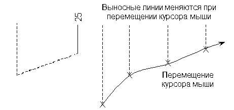 Один конец выносной линии остается на одной оси с положением текста: