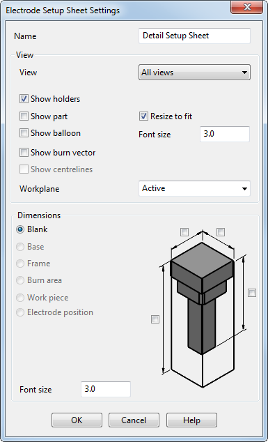 В зависимости от направления вида могут отображаться различные размеры. Чтобы отобразились нужные размеры, выберите соответствующий вид электрода из списка Вид.