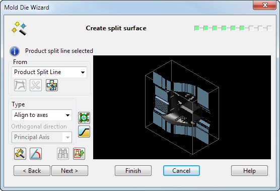 Да - форма ступенчатой поверхности разъёма снова отображается, и пользователь может создать вторую поверхность для вкладыша матрицы.