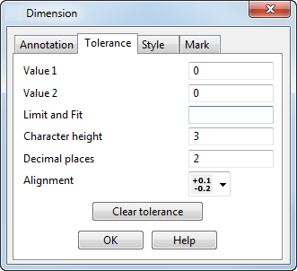 Данная вкладка позволяет редактировать допуск размера.