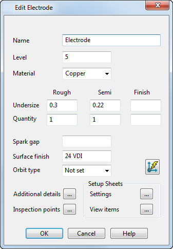 - Количество - введите количество электродов для Черновой, Полчистовой и Чистовой обработки в наборе электродов.